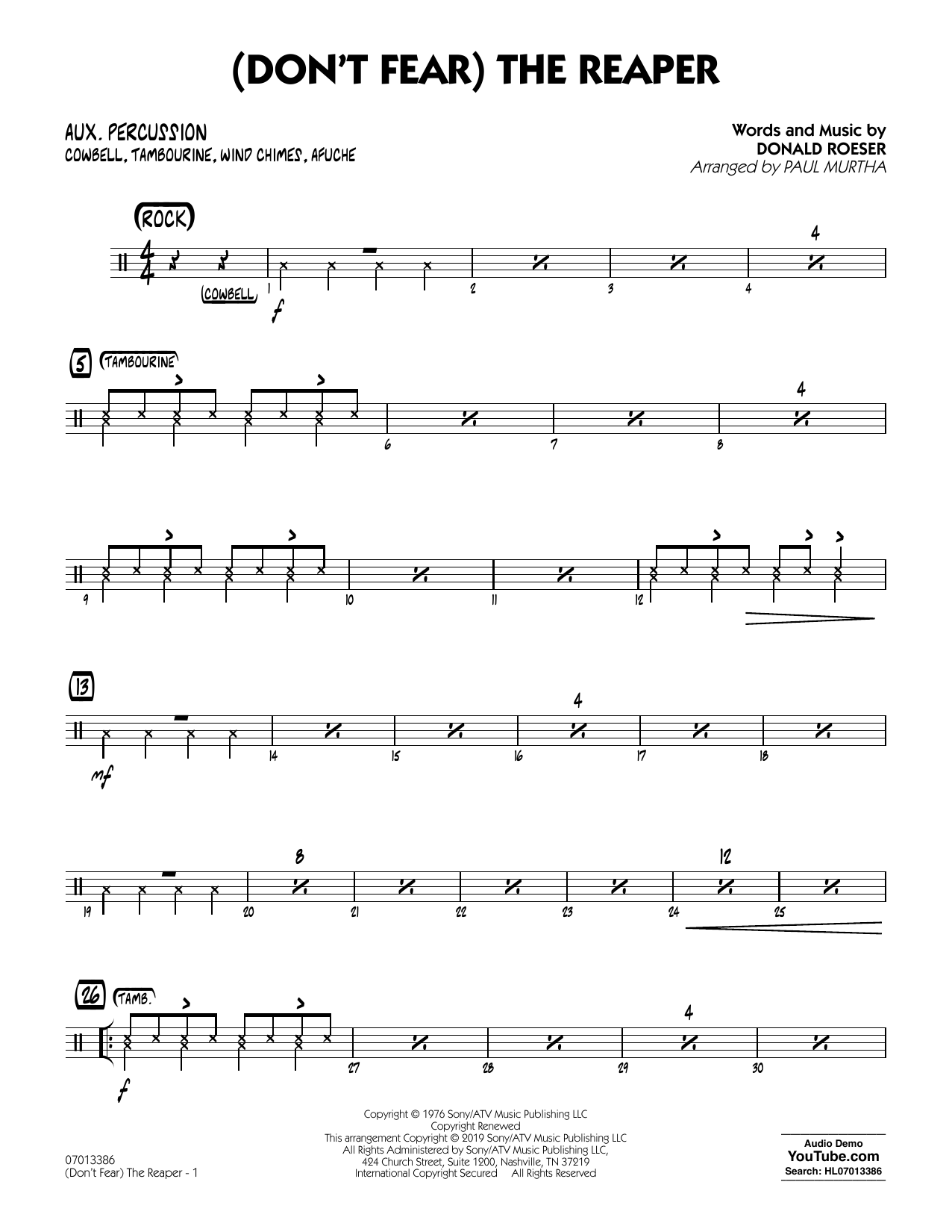 (Don't Fear) The Reaper (arr. Paul Murtha) - Aux Percussion