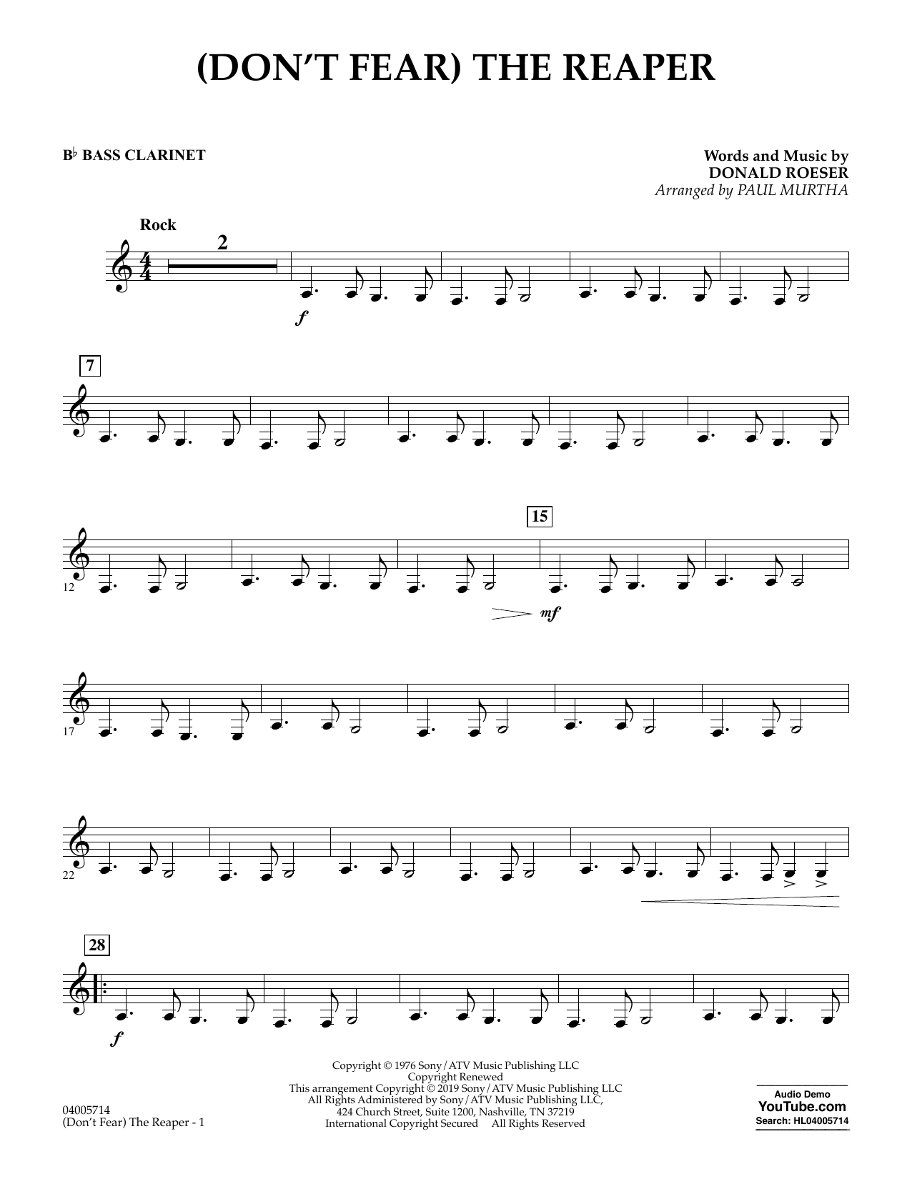 Informácie o notách (Don't Fear) The Reaper (arr. Paul Murtha) - Bb Bass Clarinet