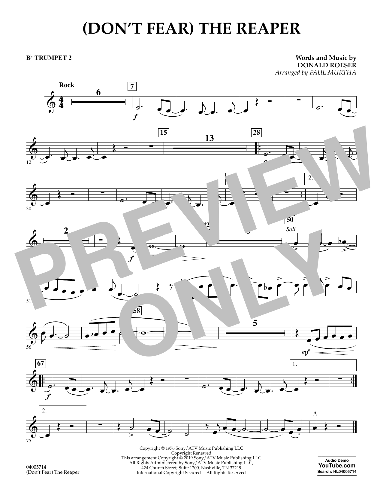 (Don't Fear) The Reaper (arr. Paul Murtha) - Bb Trumpet 2