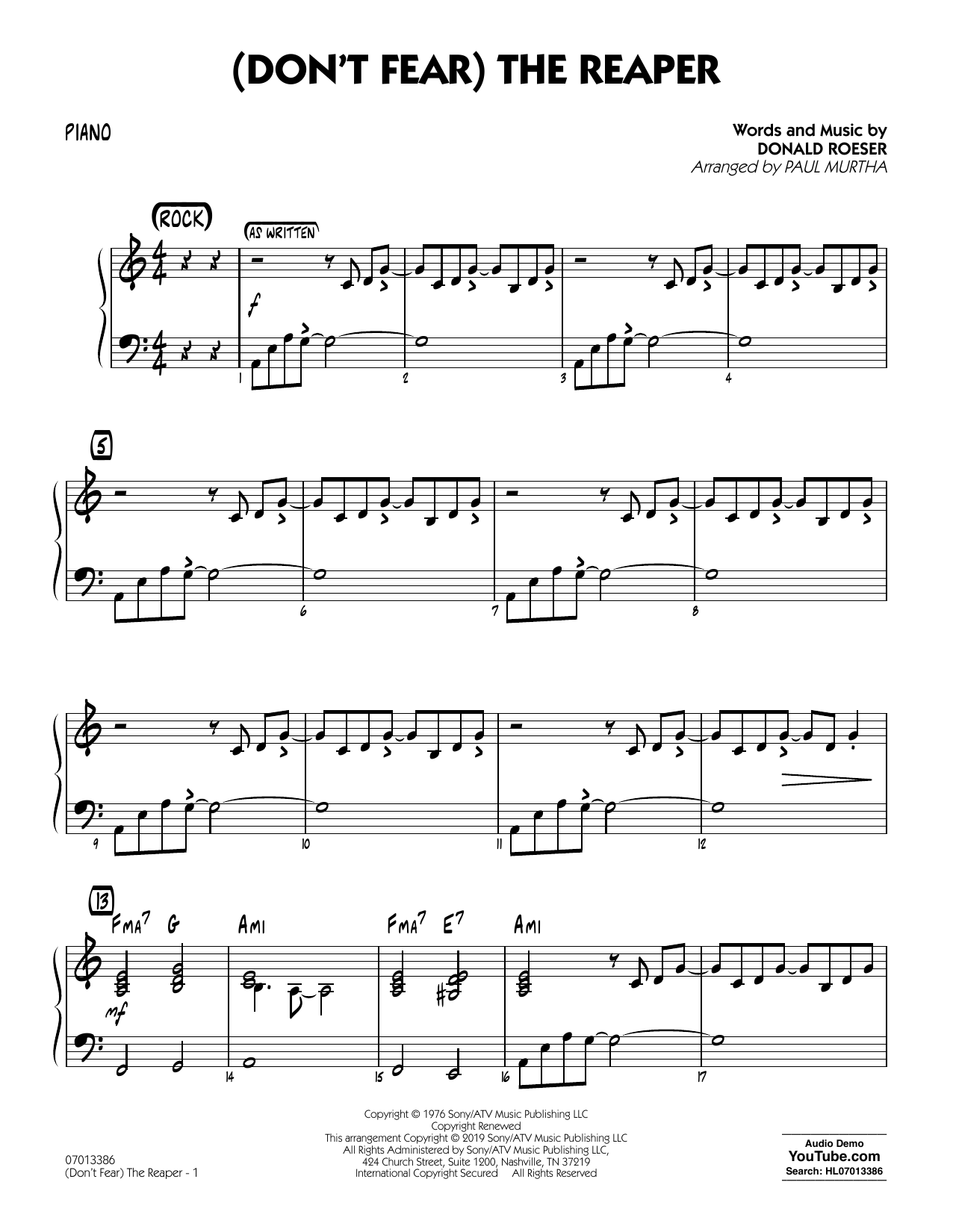 (Don't Fear) The Reaper (arr. Paul Murtha) - Piano