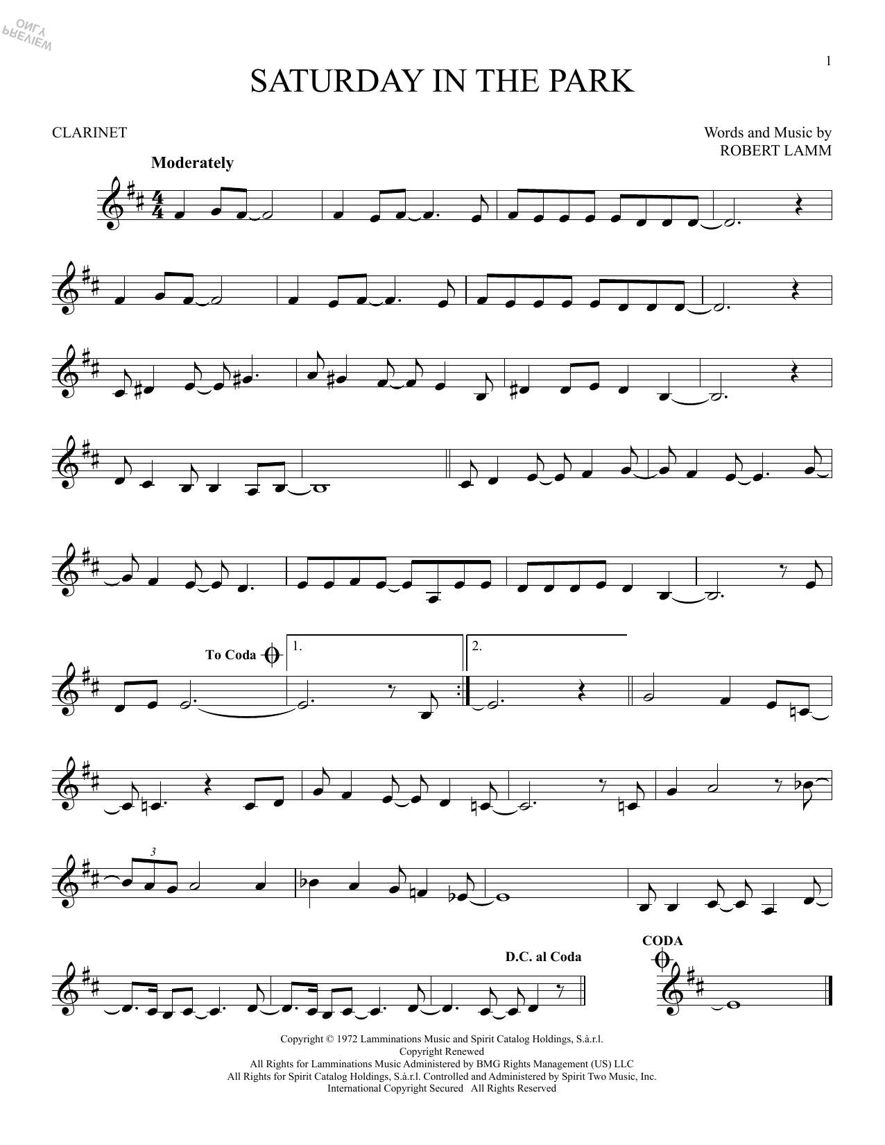 Informácie o notách Saturday In The Park