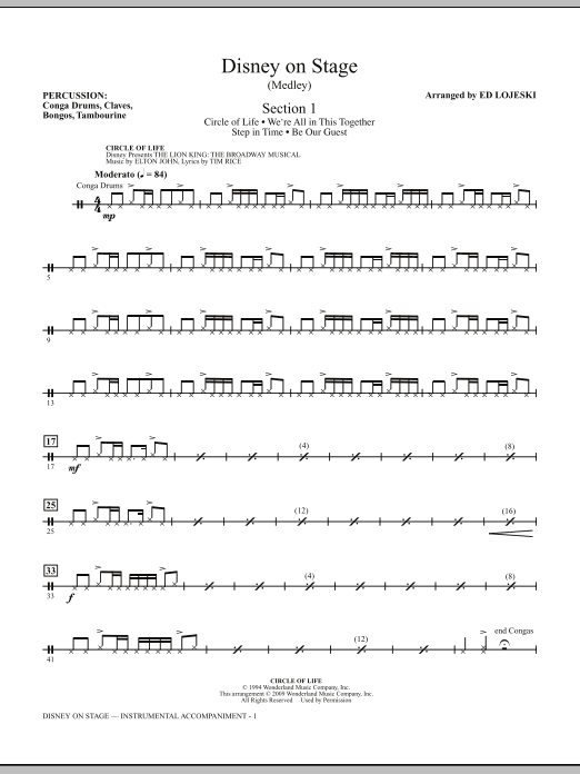 Informácie o notách Disney On Stage (Medley) - Percussion
