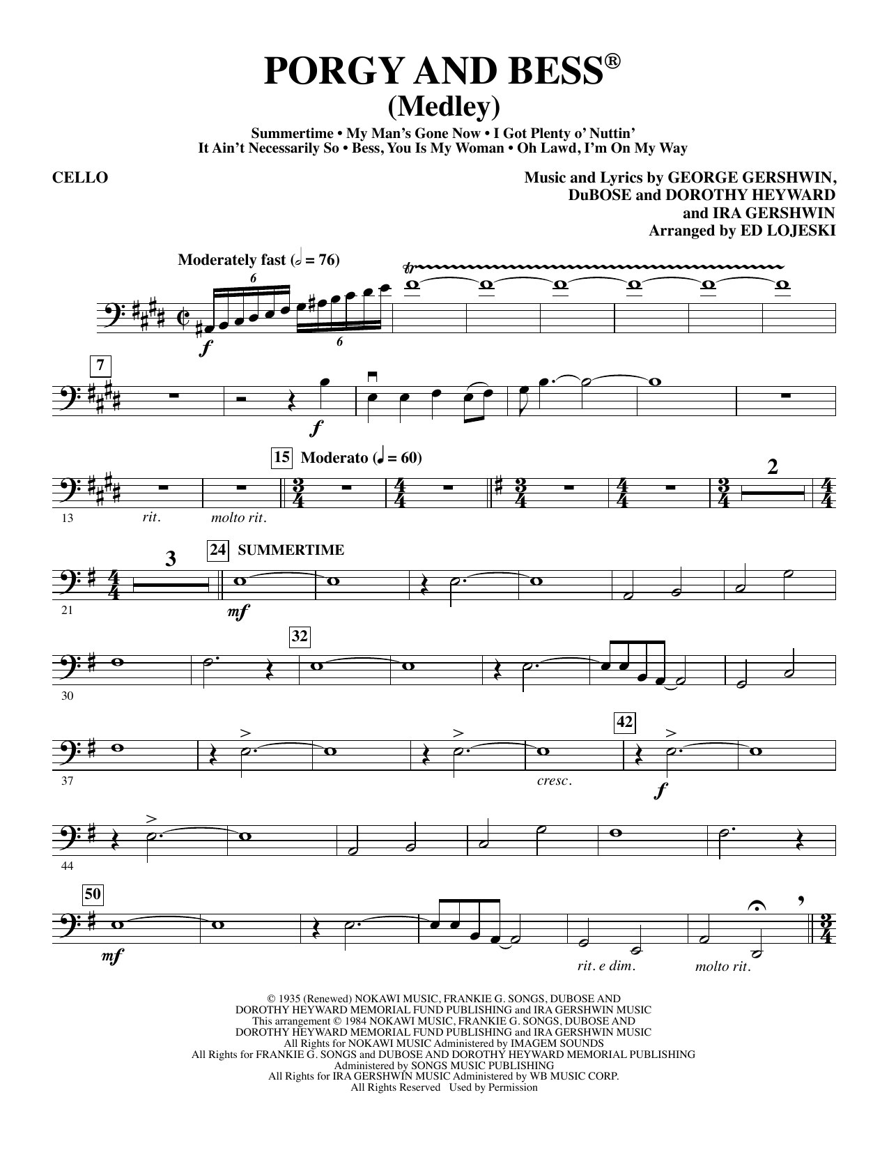 Porgy and Bess (Medley) - Cello