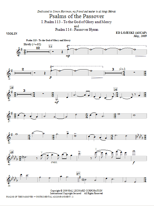 Psalms Of The Passover - Violin