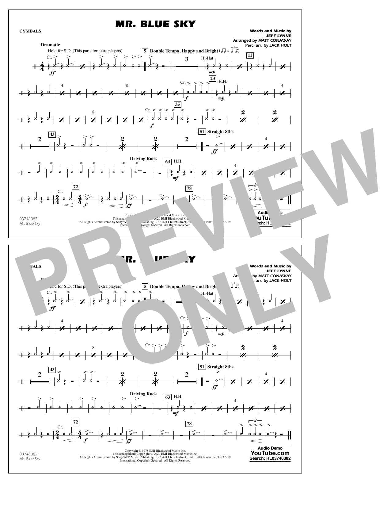 Mr. Blue Sky (arr. Matt Conaway) - Cymbals