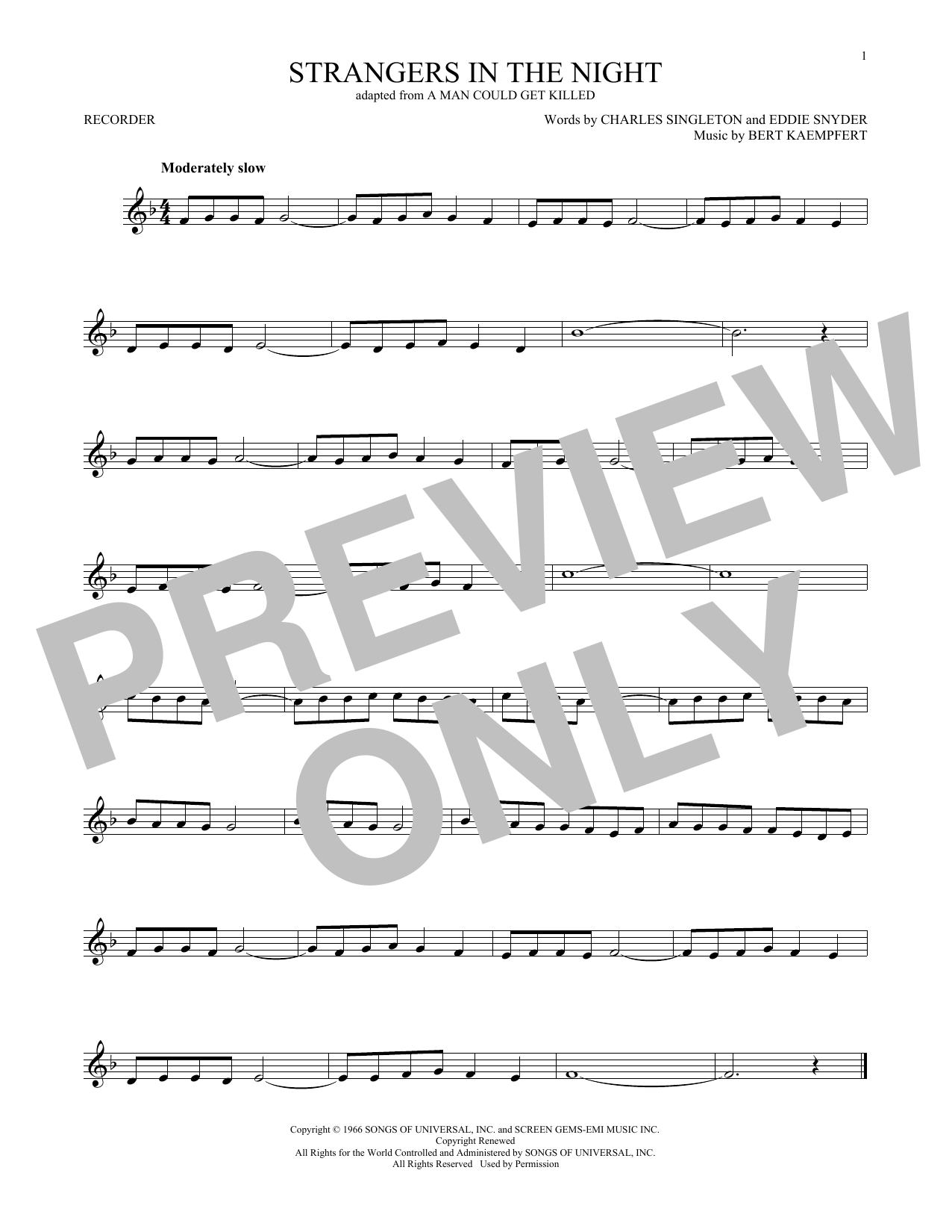 Informácie o notách Strangers In The Night