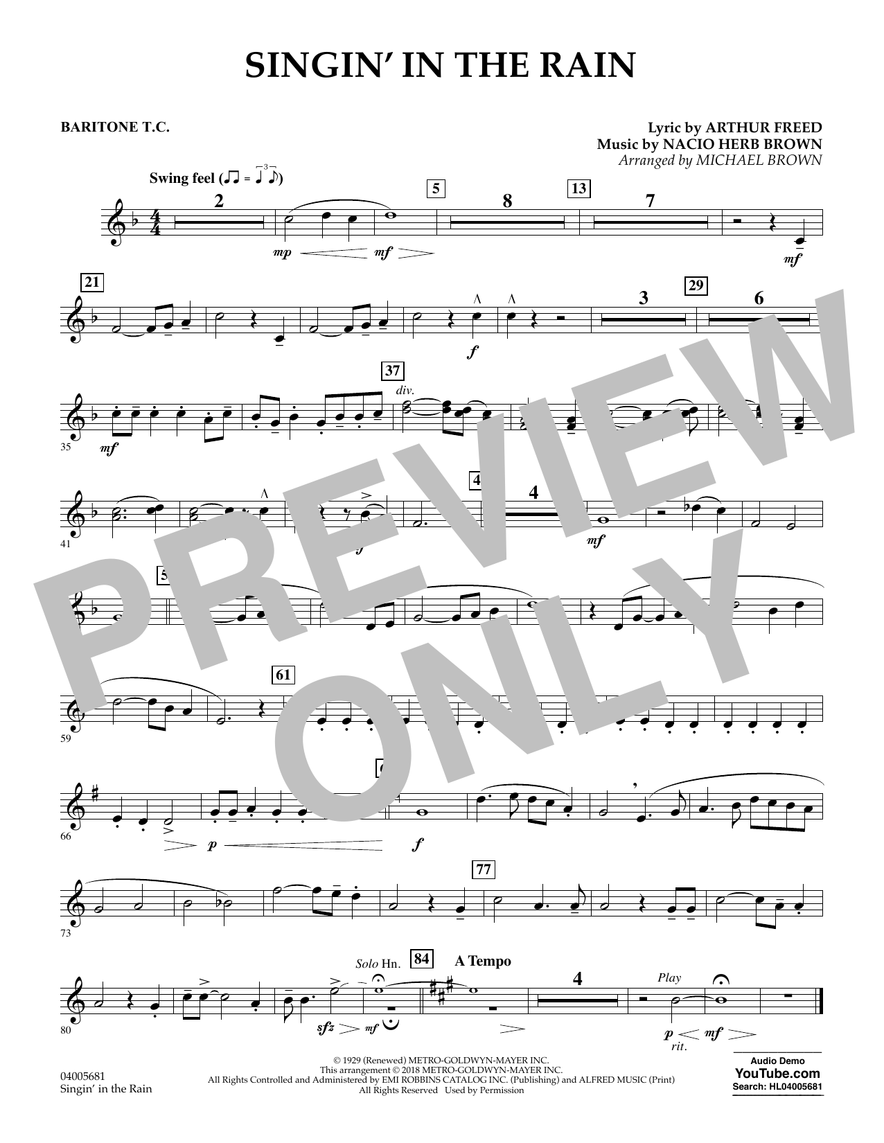 Singin' in the Rain (arr. Michael Brown) - Baritone T.C.