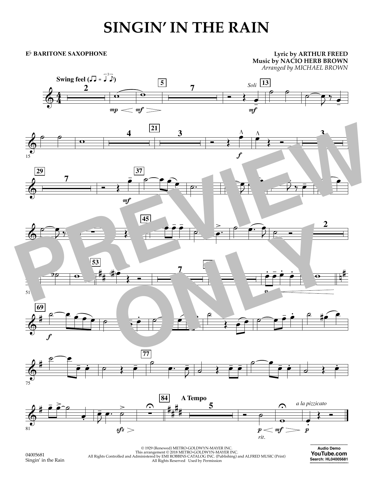 Singin' in the Rain (arr. Michael Brown) - Eb Baritone Saxophone