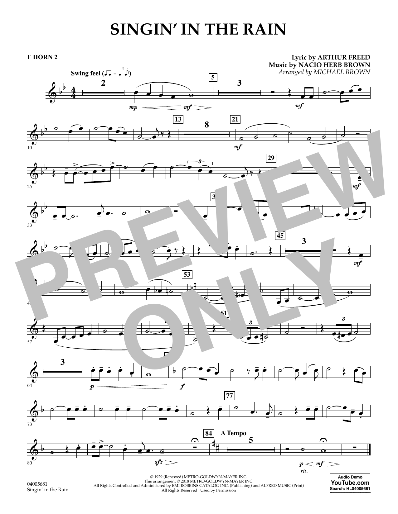 Singin' in the Rain (arr. Michael Brown) - F Horn 2
