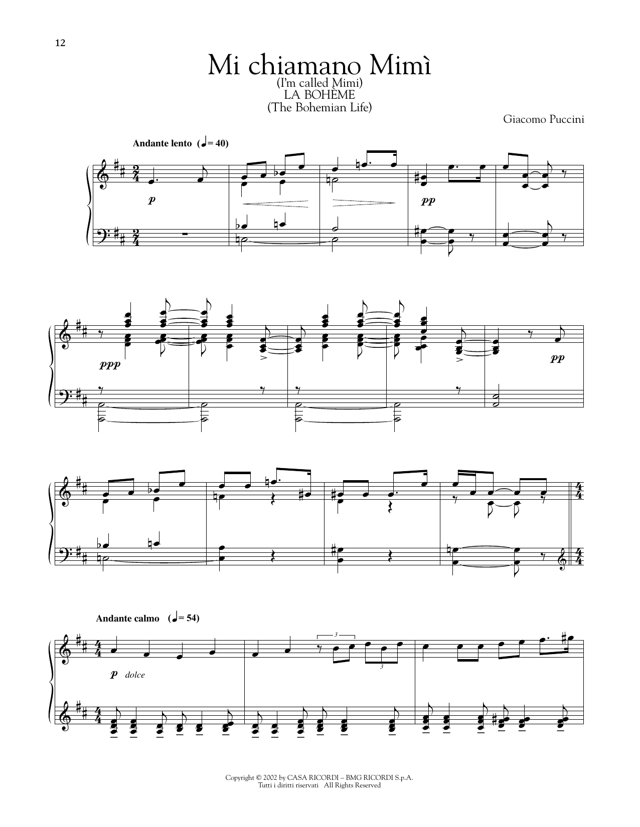Informácie o notách Mi Chiamano Mimi