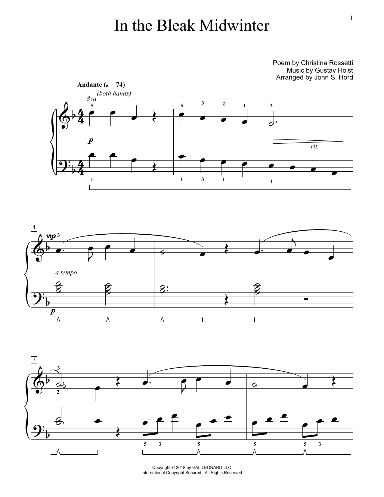 In The Bleak Midwinter (arr. John S. Hord)