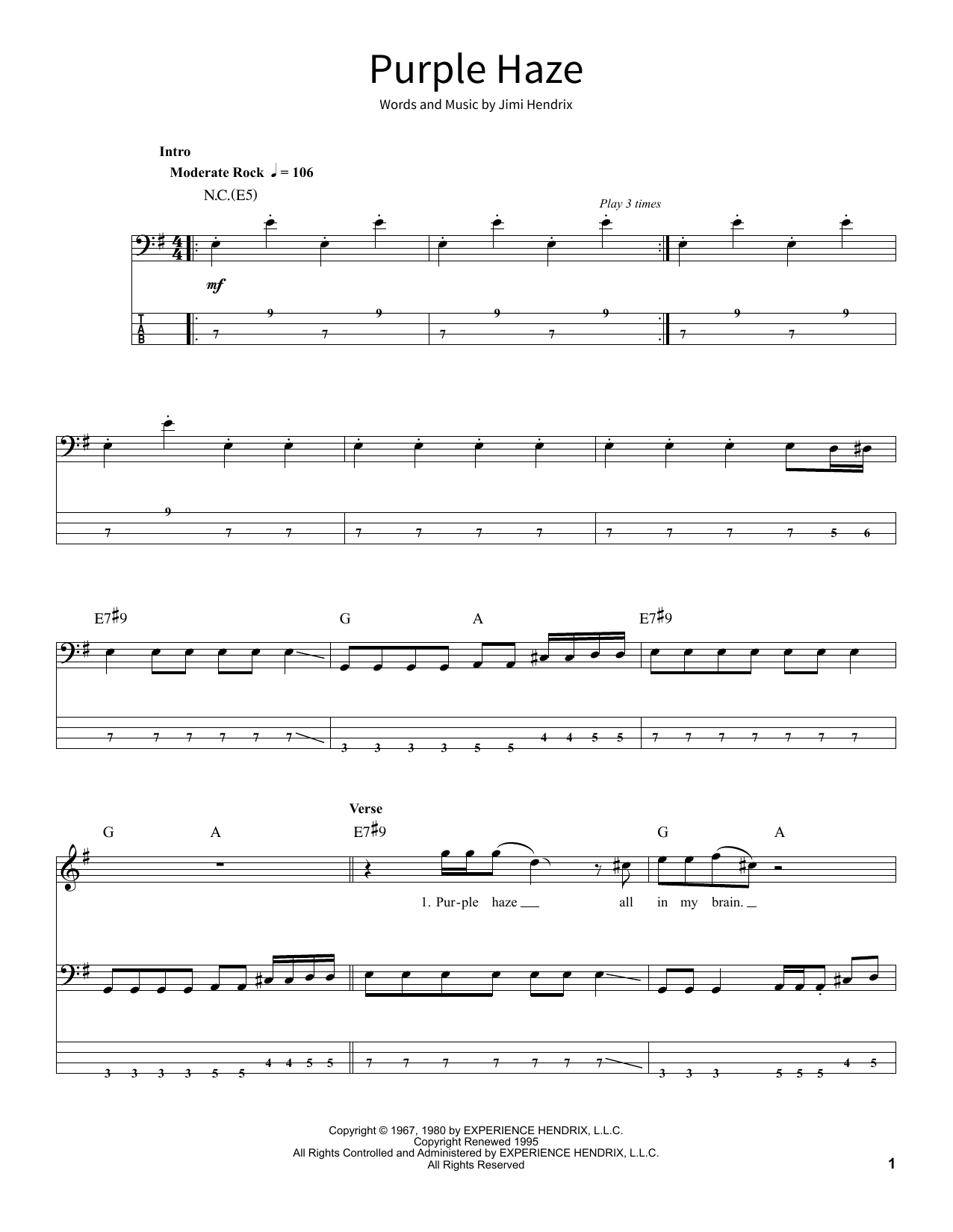 Informácie o notách Purple Haze