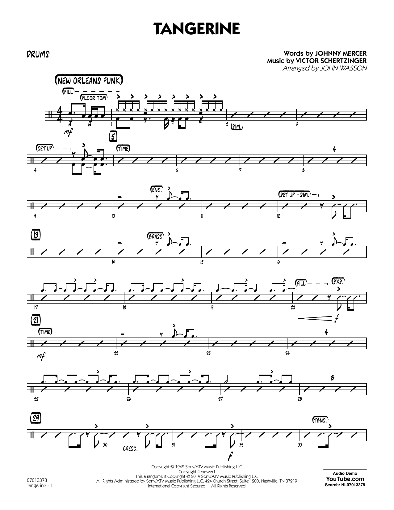 Tangerine (arr. John Wasson) - Drums