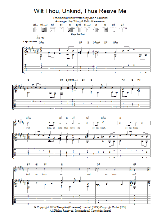 Informácie o notách Wilt Thou Unkind Thus Reave Me (as performed by Sting and Edin Karamazov)