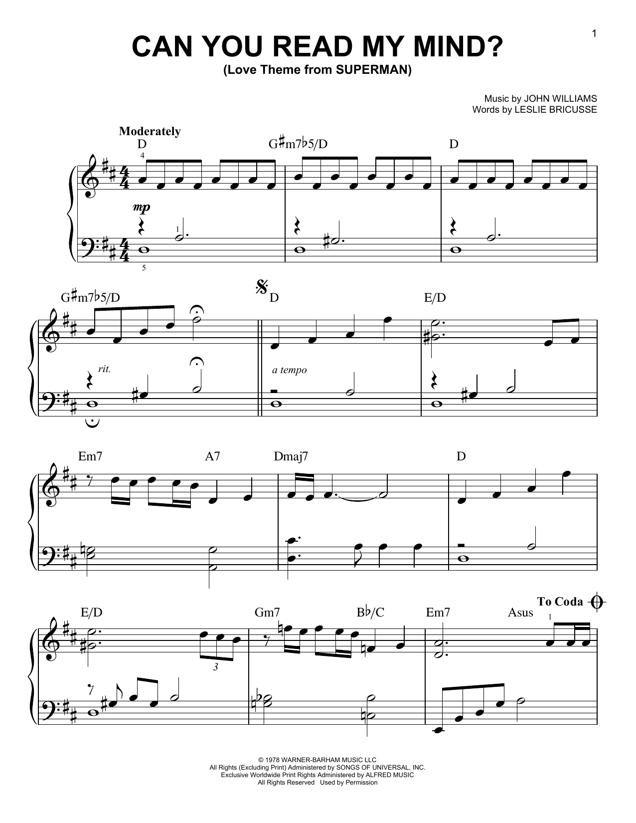 Informácie o notách Can You Read My Mind? (Love Theme from SUPERMAN)