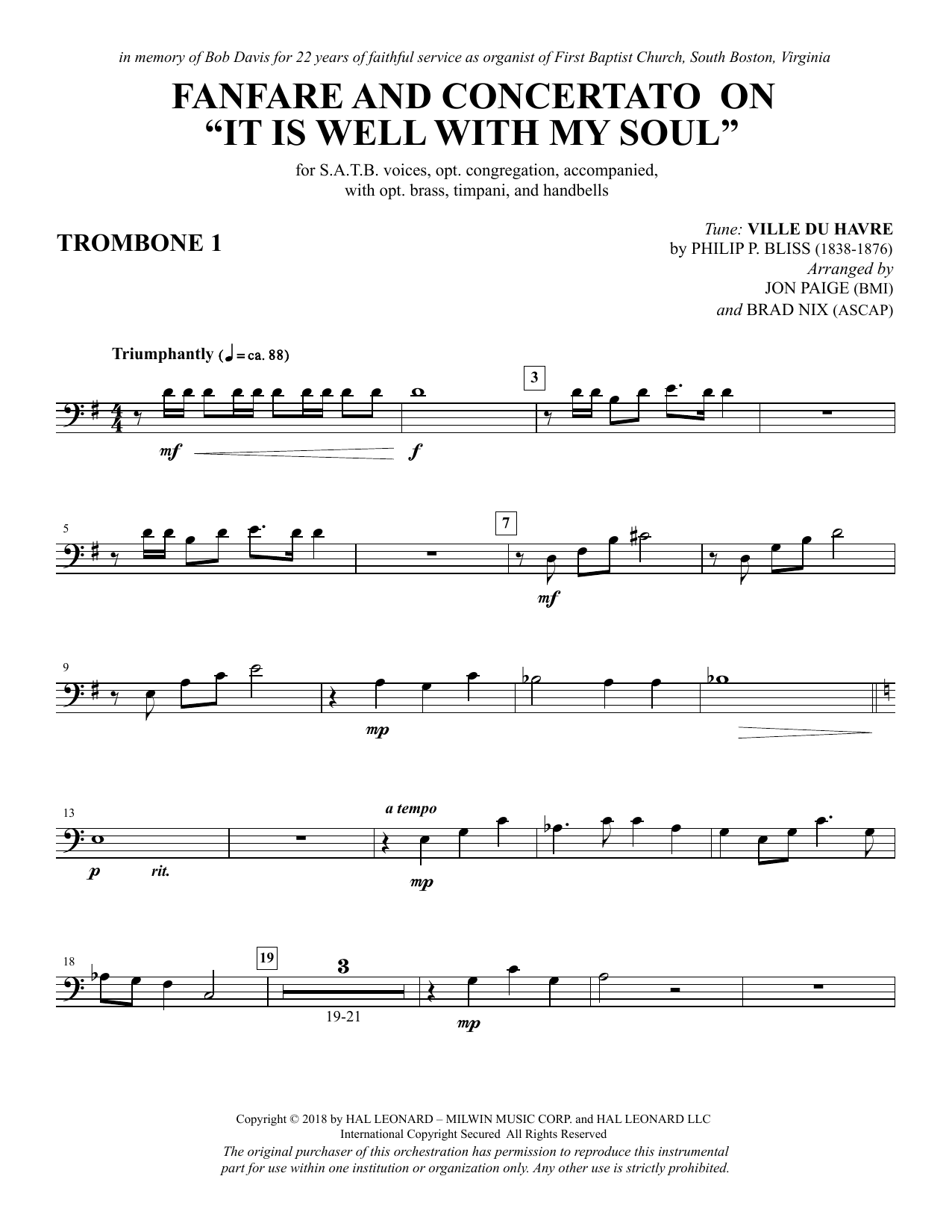 Fanfare and Concertato on "It Is Well with My Soul" - Trombone 1