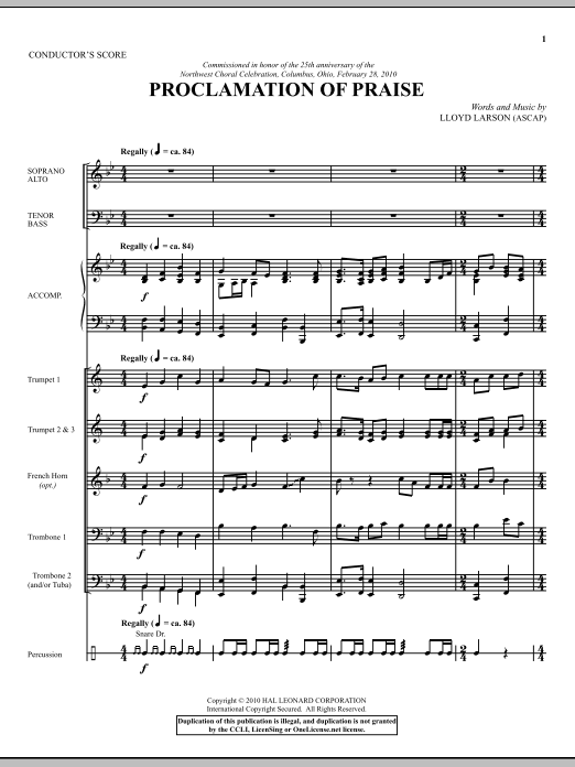 Informácie o notách Proclamation Of Praise - Score