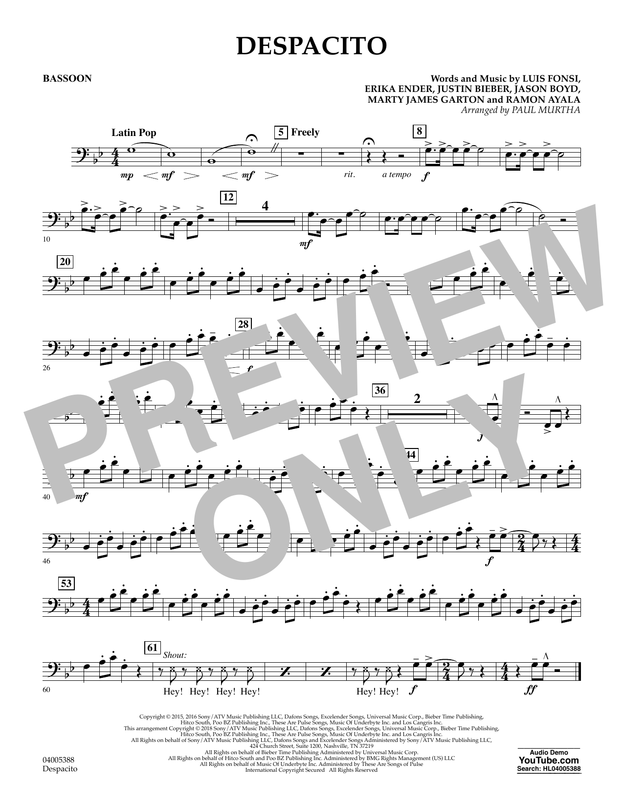 Informácie o notách Despacito (arr. Paul Murtha) - Bassoon