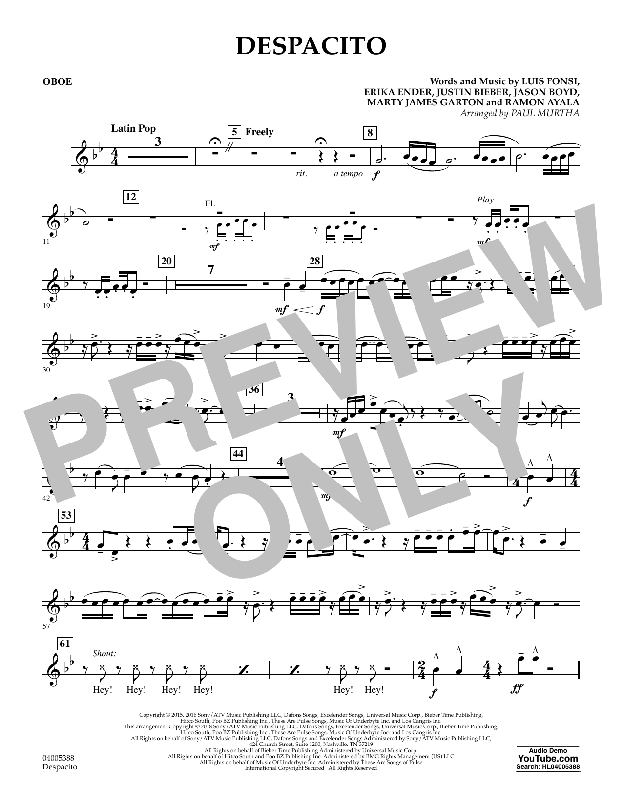 Informácie o notách Despacito (arr. Paul Murtha) - Oboe