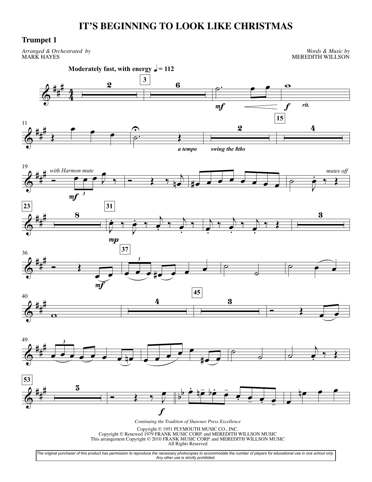 Informácie o notách It's Beginning To Look Like Christmas (arr. Mark Hayes) - Bb Trumpet 1