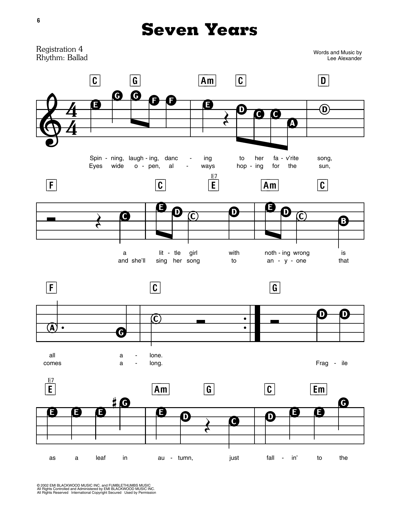 Informácie o notách Seven Years