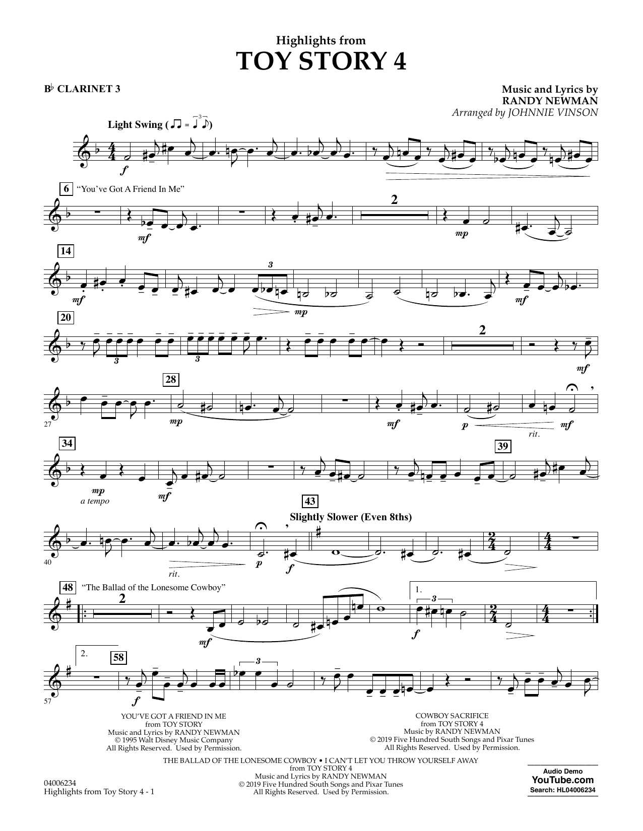 Highlights from Toy Story 4 (arr. Johnnie Vinson) - Bb Clarinet 3