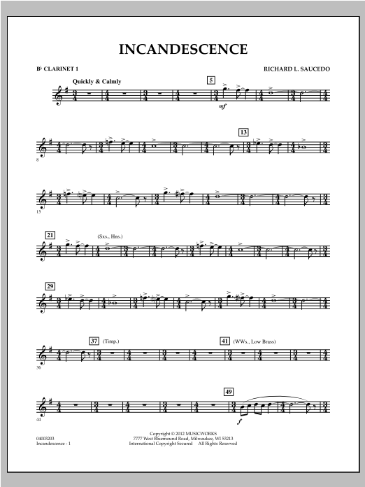 Informácie o notách Incandescence - Bb Clarinet 1