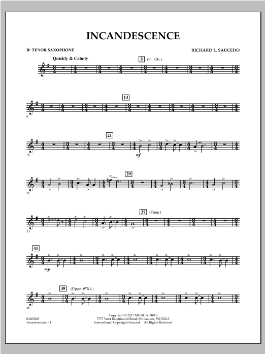 Informácie o notách Incandescence - Bb Tenor Saxophone