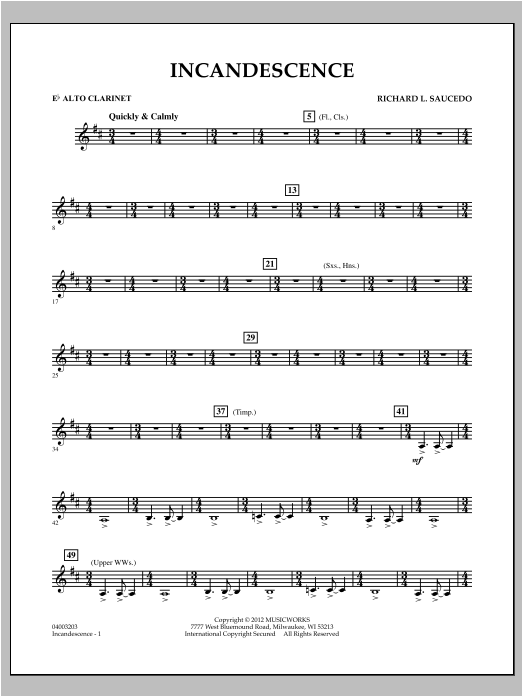 Informácie o notách Incandescence - Eb Alto Clarinet