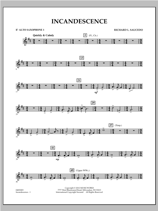 Informácie o notách Incandescence - Eb Alto Saxophone 1