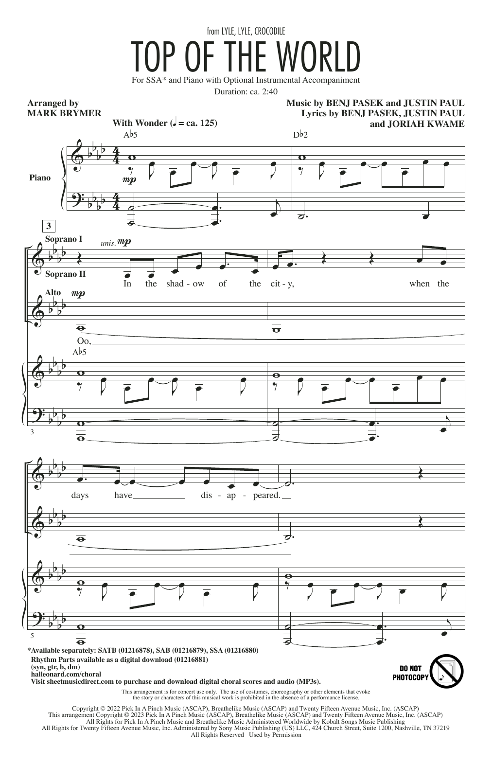 Top Of The World (from Lyle, Lyle, Crocodile) (arr. Mark Brymer)