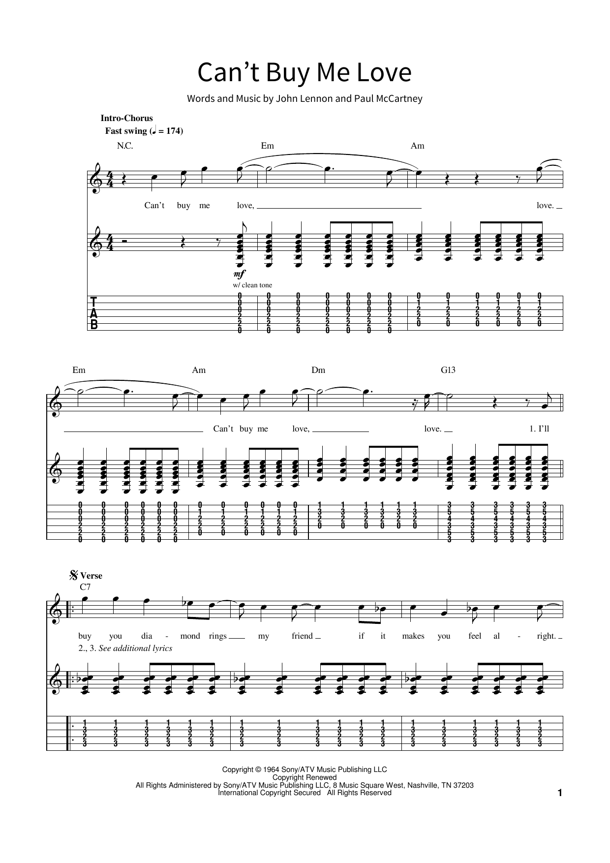 Informácie o notách Can't Buy Me Love