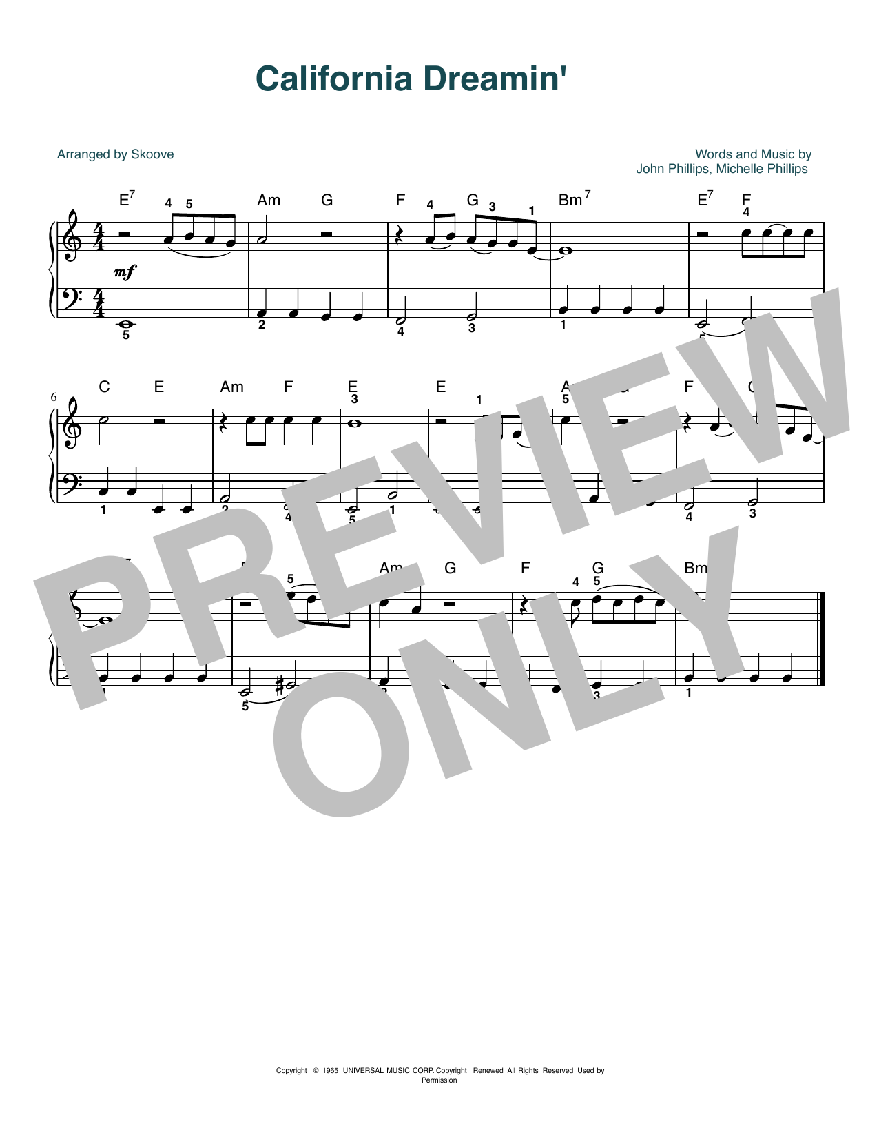 Informácie o notách California Dreamin' (arr. Skoove)