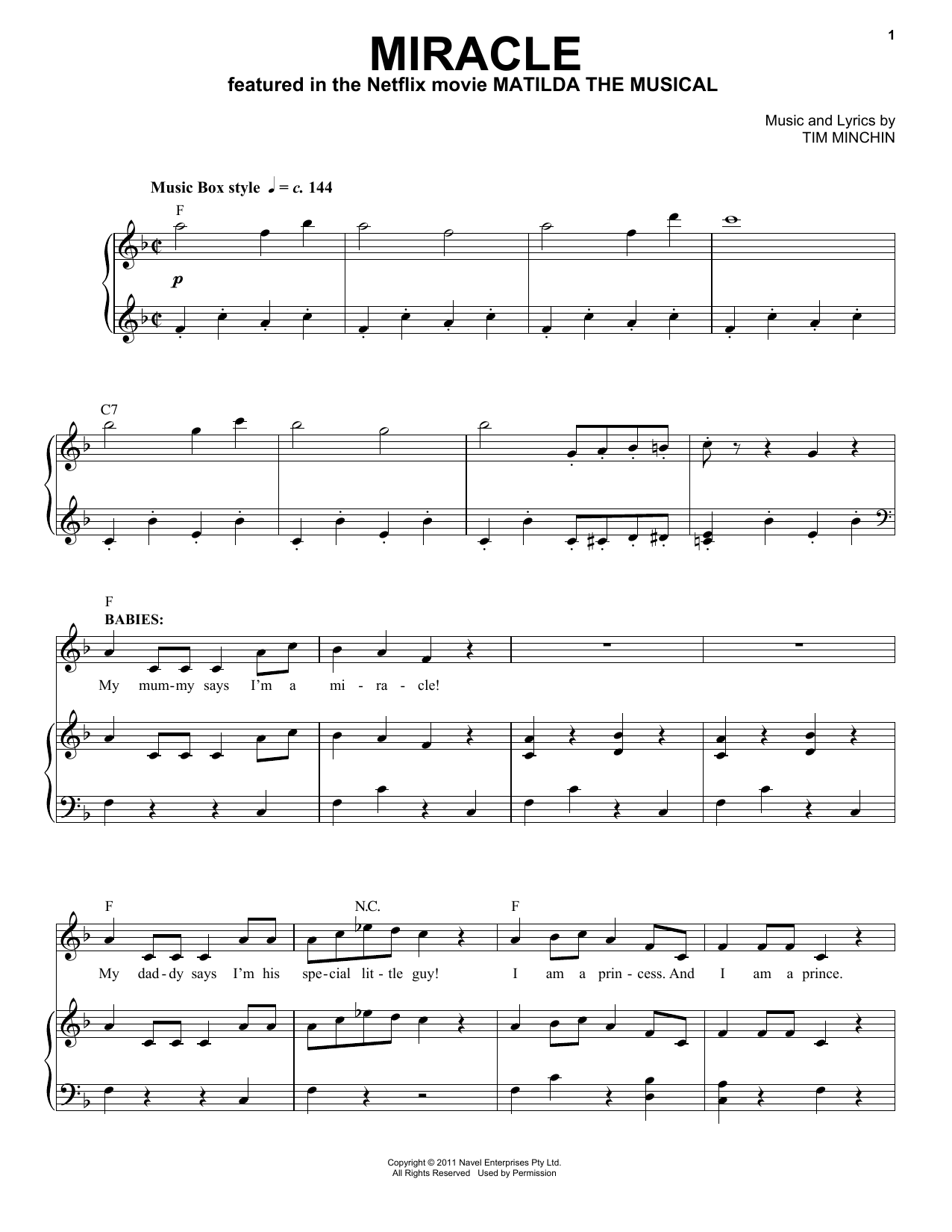 Informácie o notách Miracle (from the Netflix movie Matilda The Musical)
