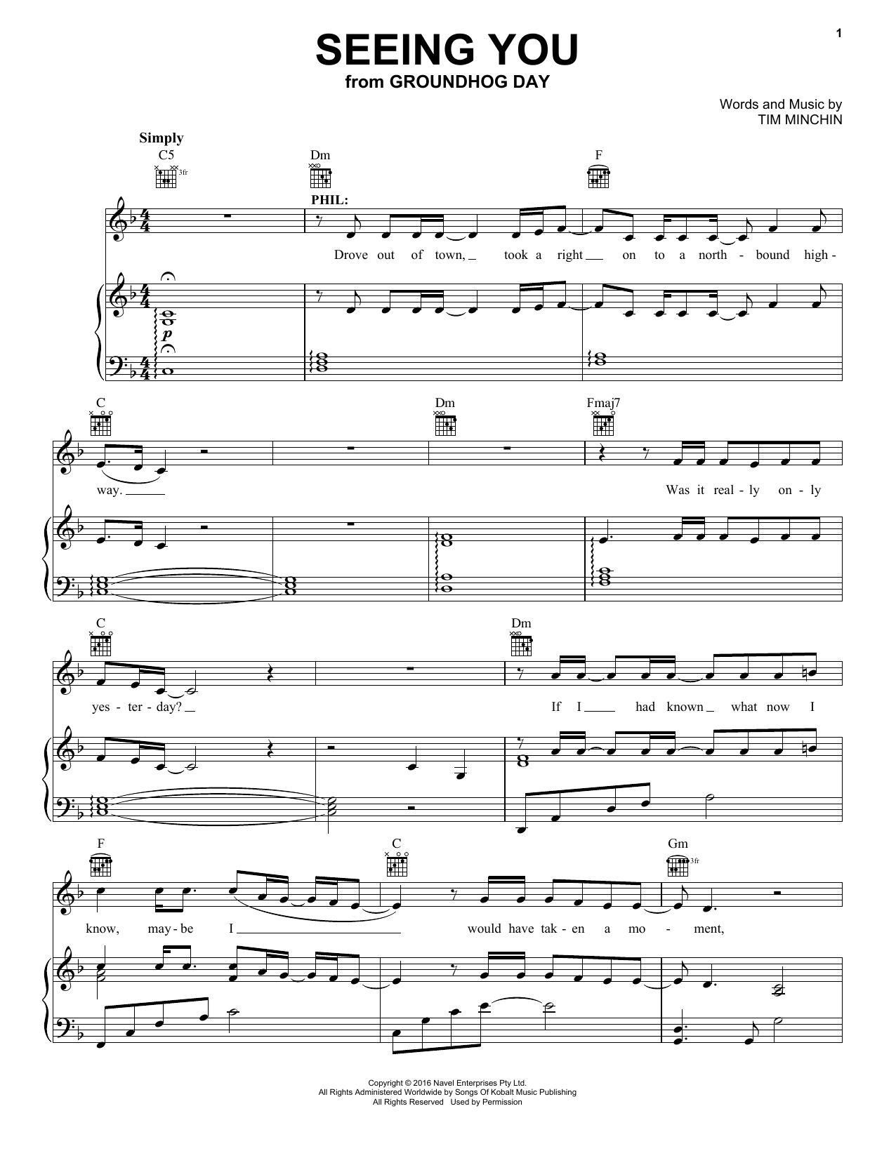 Informácie o notách Seeing You (from Groundhog Day The Musical)