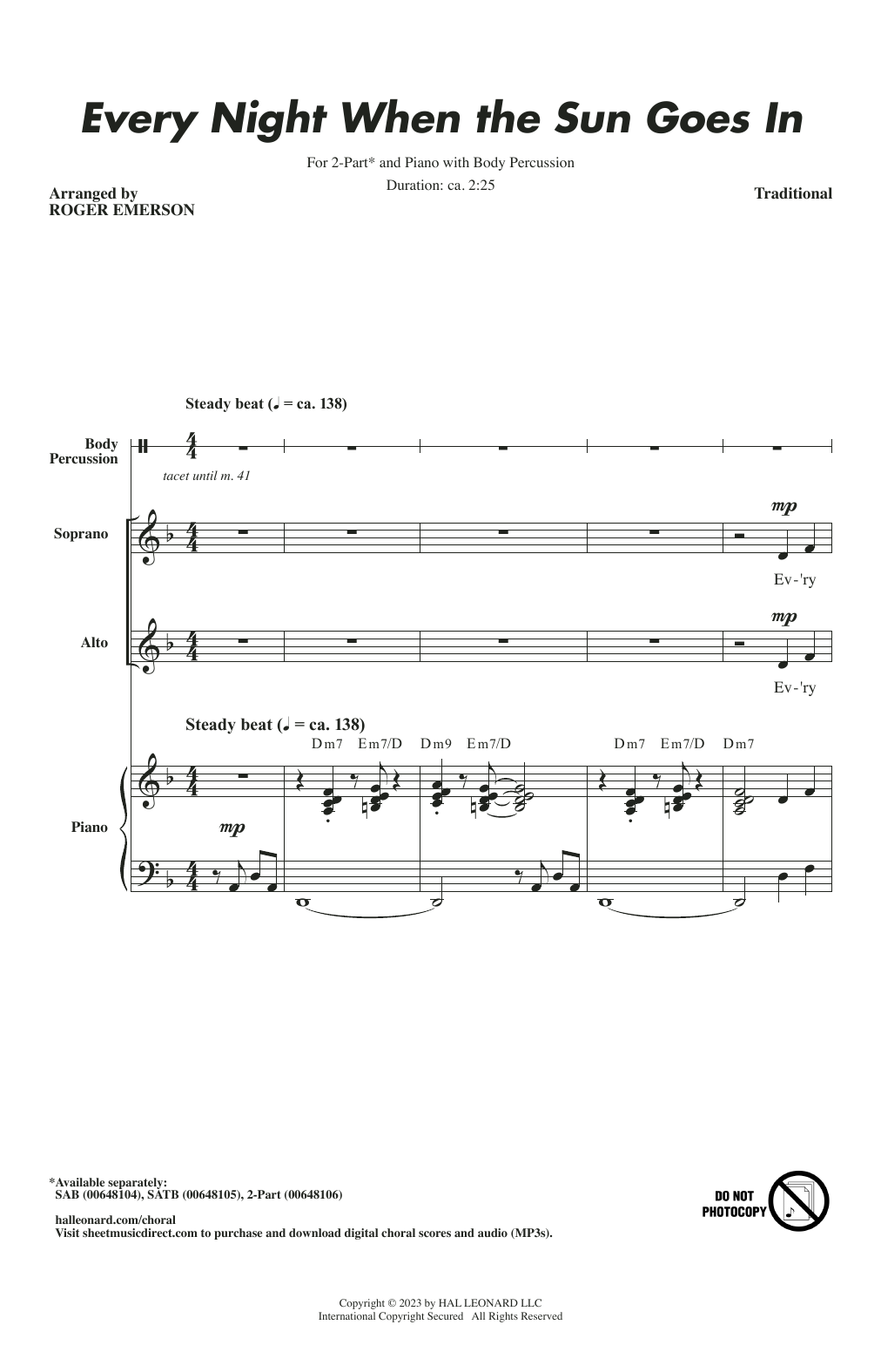 Every Night When The Sun Goes In (arr. Roger Emerson)